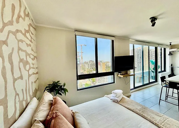 Hermoso Depto Estudio Frente A Mall Plaza Egana Santiago apartment is located in the Nunoa district, and Egaña Plaza tube station is only 150 metres away. To diversify guests' leisure, a rooftop pool is provided.